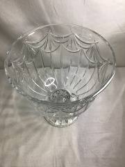 10 inch wide glass centerpiece. Perfect for a punch bowl, wine chiller, or dining centerpiece